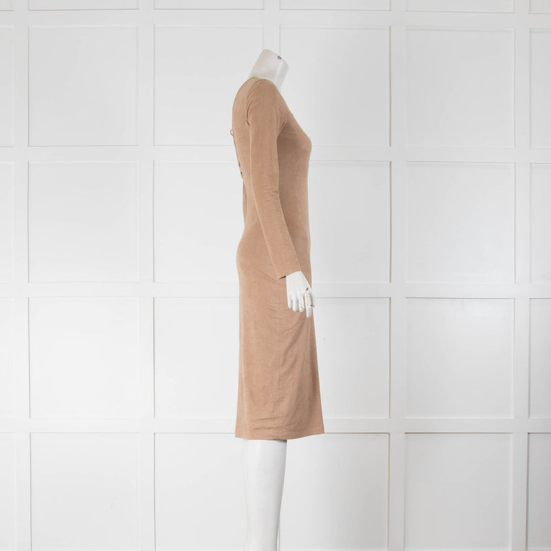 T Alexander Wang Beige Bodycon Lace Up Detail Dress