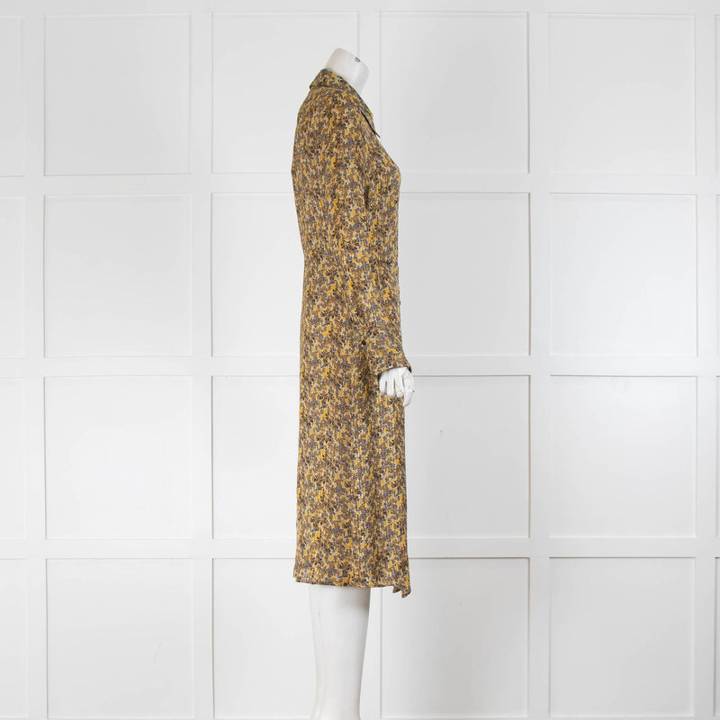 Tara Jarmon Mustard Grey Gold Thread Button Up Dress