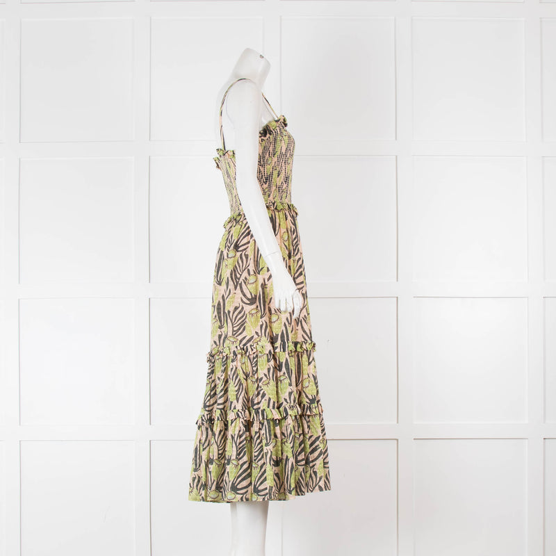 Temperley London Smocked Printed Midi Dress