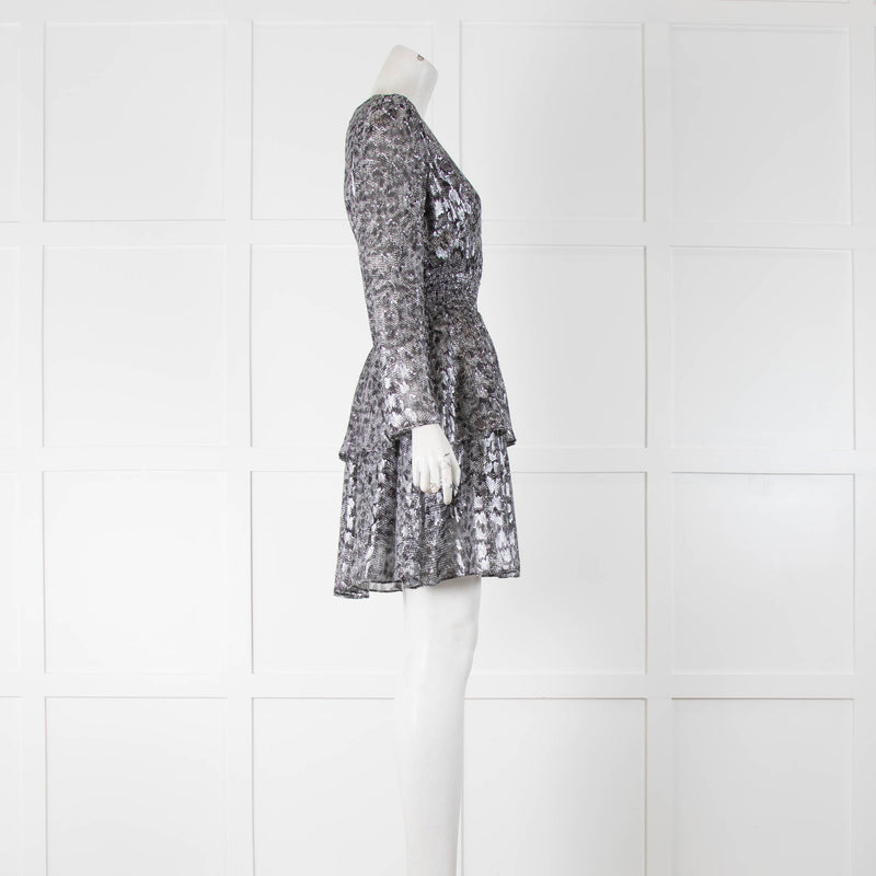 The Kooples Metallic Silver Tiered Mini Dress