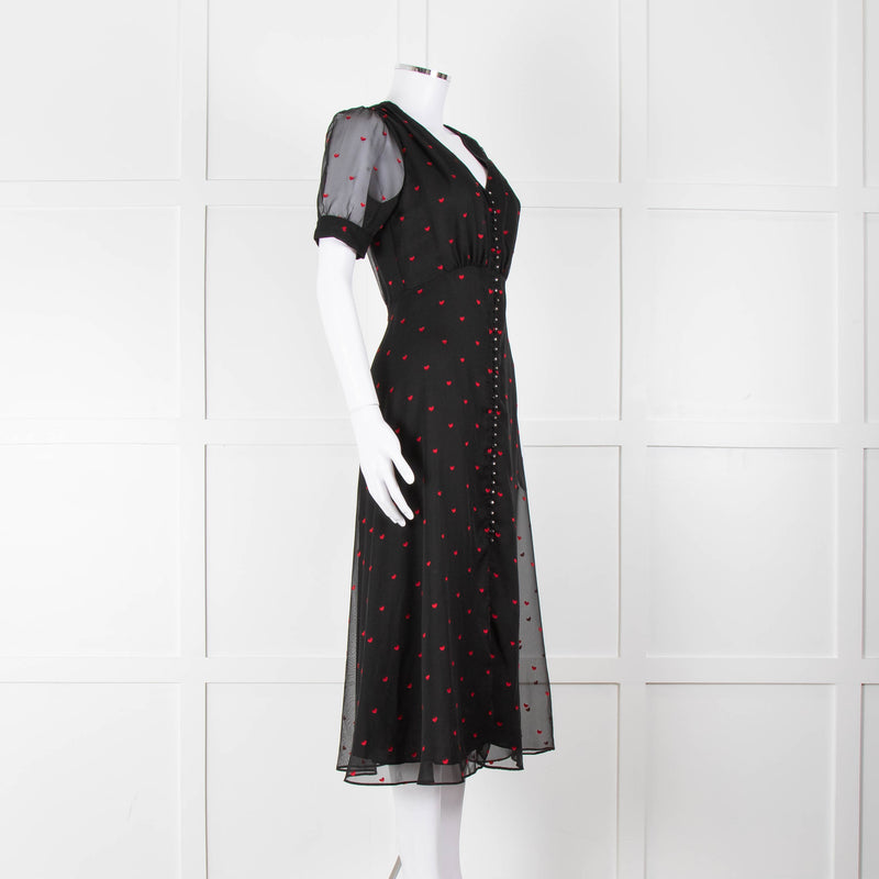 The Kooples Black Pink Heart Short Sleeve Midi Dress