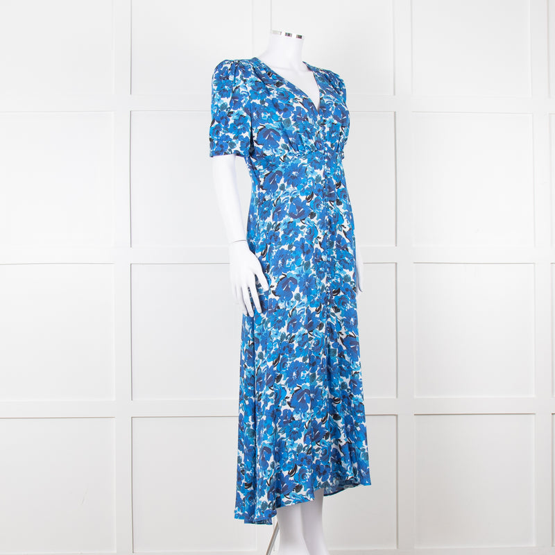 The Kooples Blue Floral Puff Sleeve Midi Dress