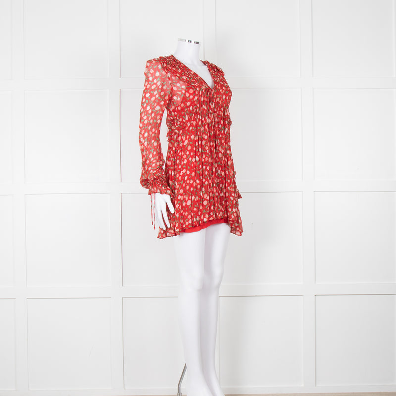 The Kooples Red Pink Green Floral Print Sleeved Dress