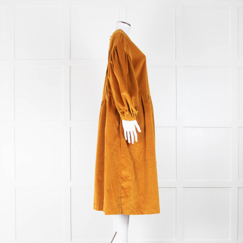 The Meaning Well Mustard Velvet Puff Sleeve Margot Dress