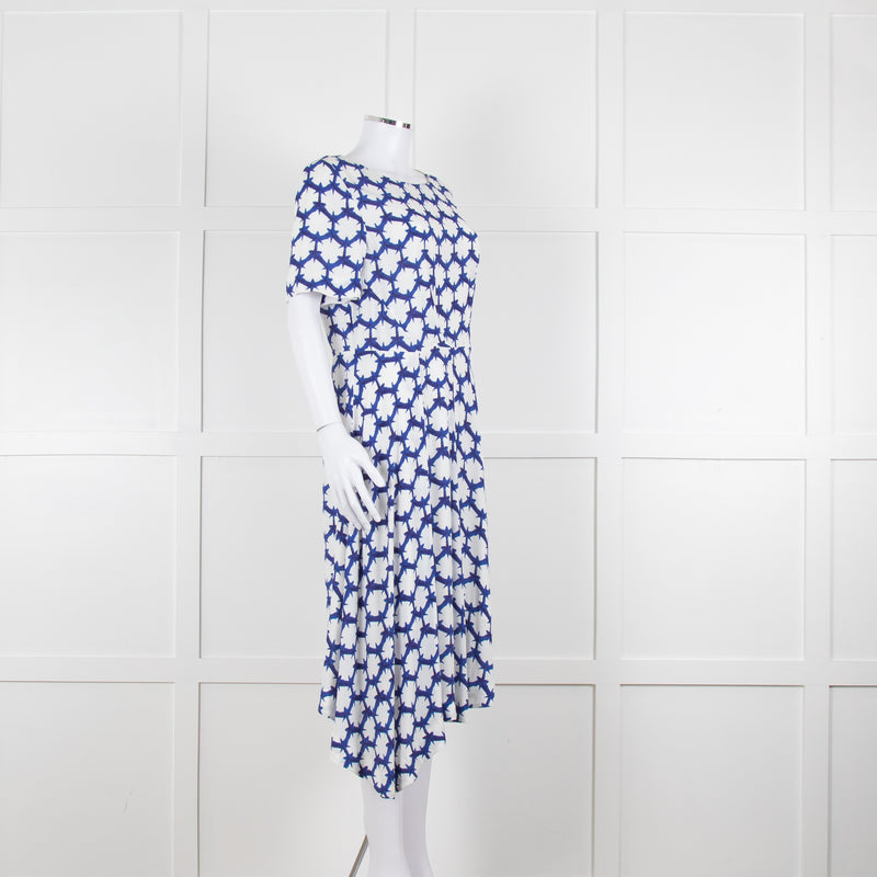 The Fold White Blue Print Short Sleeve Dress