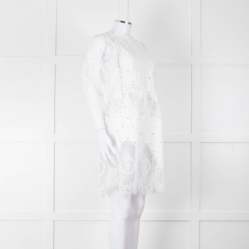 Temperley White Cotton Mix Broderie Anglaise Short Dress With Slip