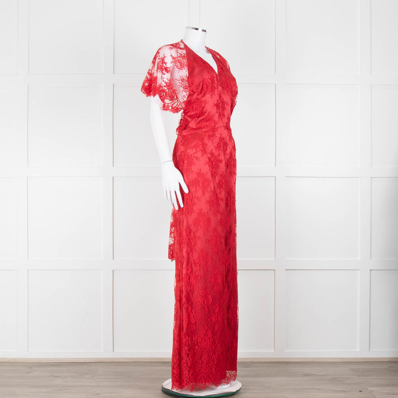 Temperley Red Dress With Lace Overlay