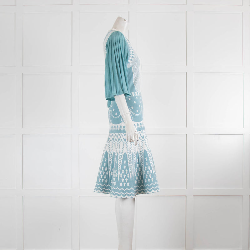 Temperley White Duck Egg Blue Printed Dress