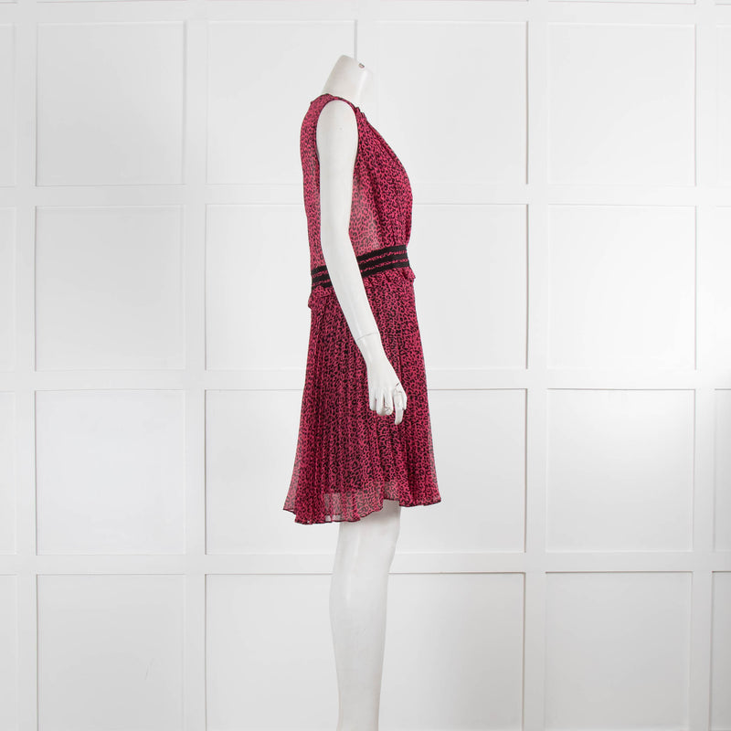 The Kooples Pink And Black Animal Print Pleated Sleeveless Dress