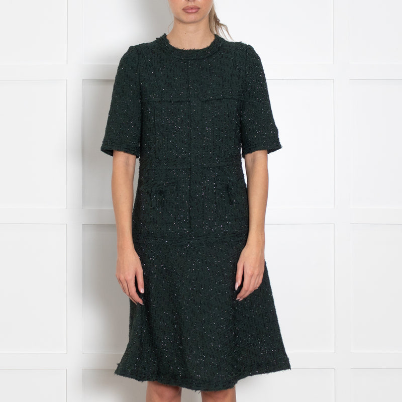 Teri Jon Dark Green Black Lurex Fleck Short Sleeve Dress