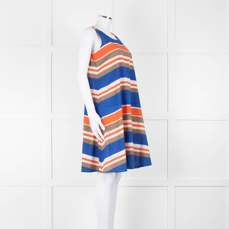 TSE Blue Orange Striped Cotton Sleeveless Dress