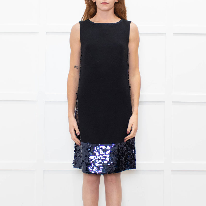 Tory Burch Black Navy Sequinned Trim Sleeveless Dress