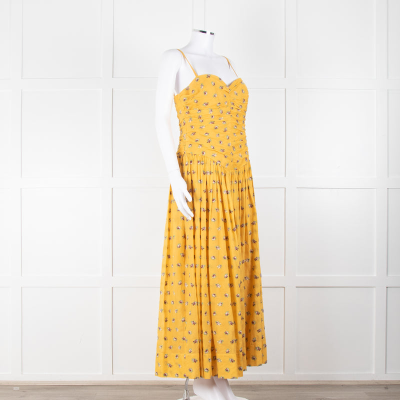 Tory Burch Yellow Floral Embroidered Cotton Sleeveless Dress