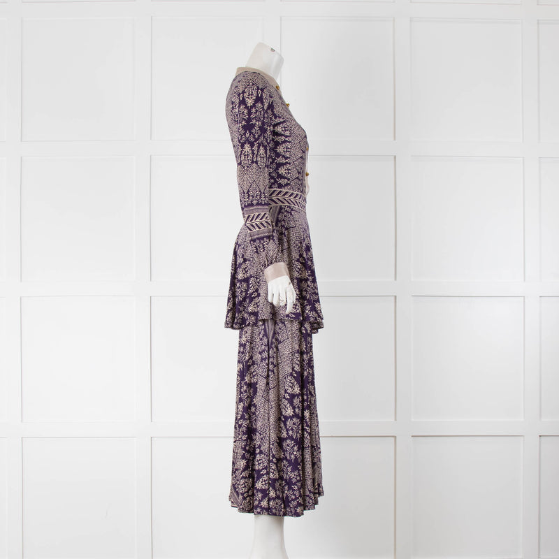 Tory Burch Purple Beige Floral Silk Jersey Mix Maxi Dress