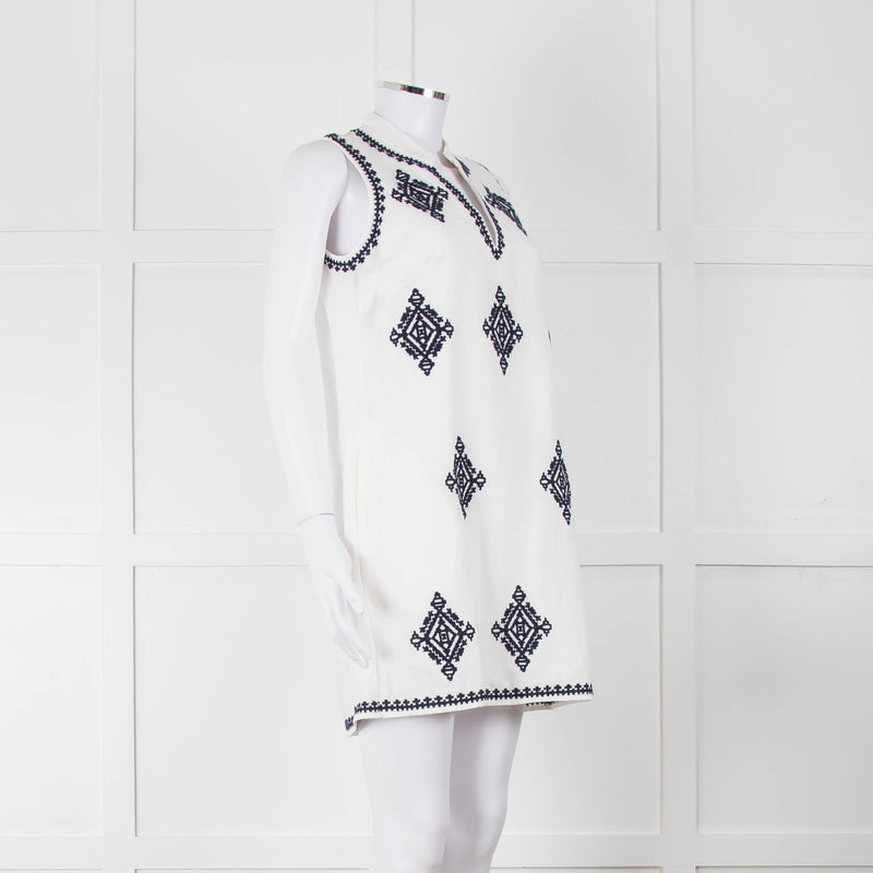 Tory Burch Celeste White Dress With Blue Aztec Print