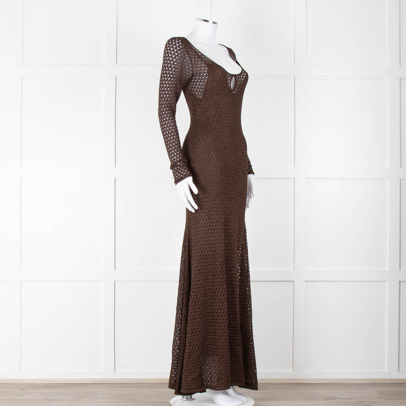 Tom Ford Chocolate Brown Lurex Crochet Maxi Dress + Slip