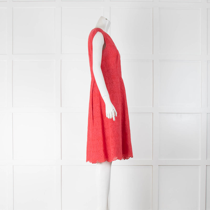 Tory Burch Coral Cotton Embroidered Sleeveless Dress