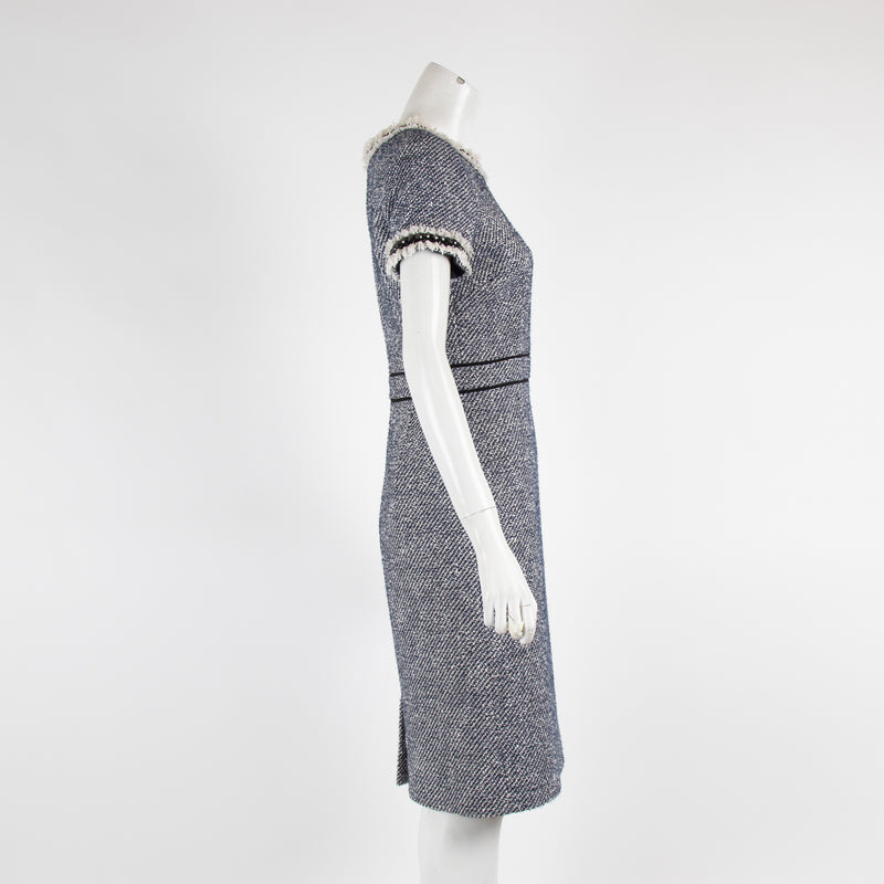 Tory Burch Navy Tweed Shift Dress with Crystal Detail