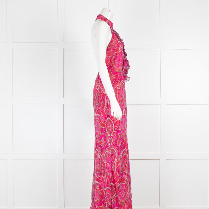 Tibi Pink Paisley Halter Neck Maxi Dress