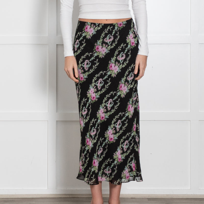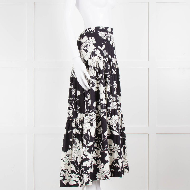 Maje Black and Cream Floral Tiered Maxi Skirt