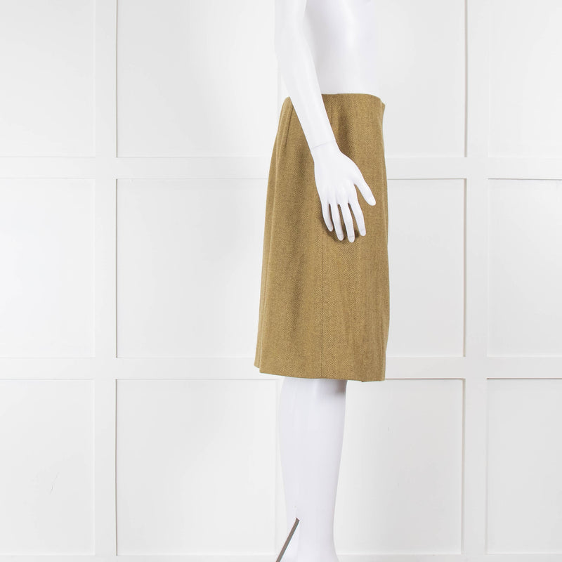 Loro Piana Green Cashmere Herringbone Wrap Skirt