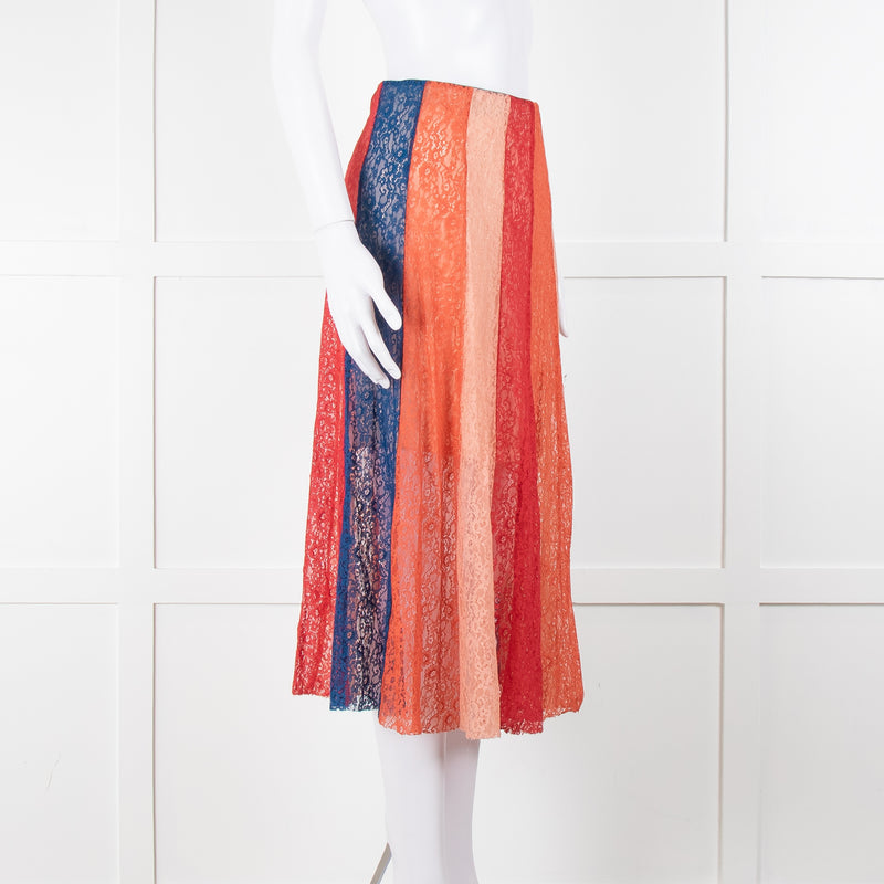 Maje Multicoloured Lace Panel Skirt With Elasticated Waist