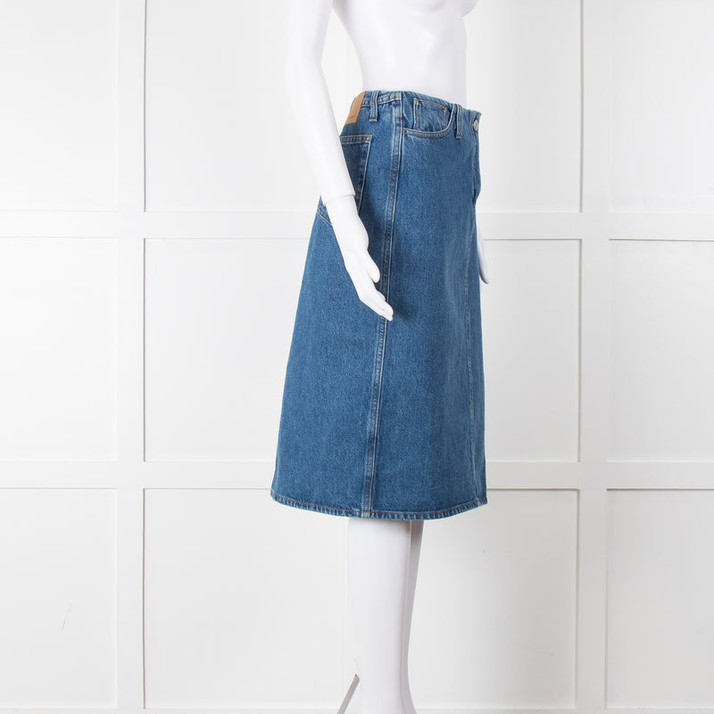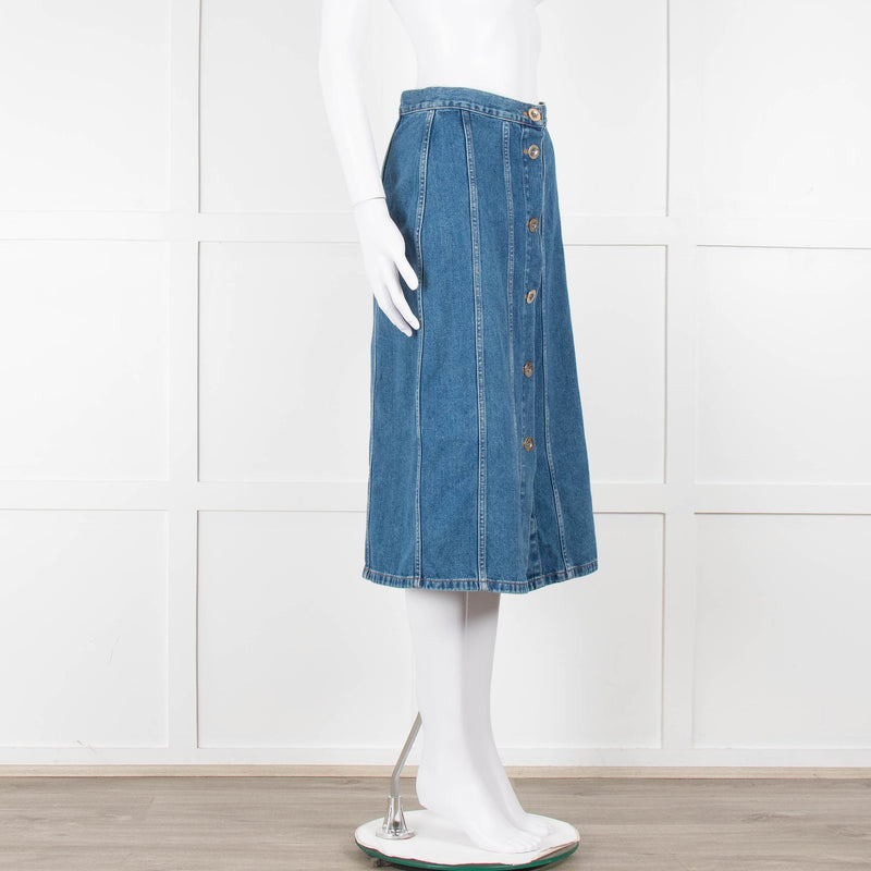 M.i.h Jeans Blue Denim Silver Front Button Detail Midi Skirt