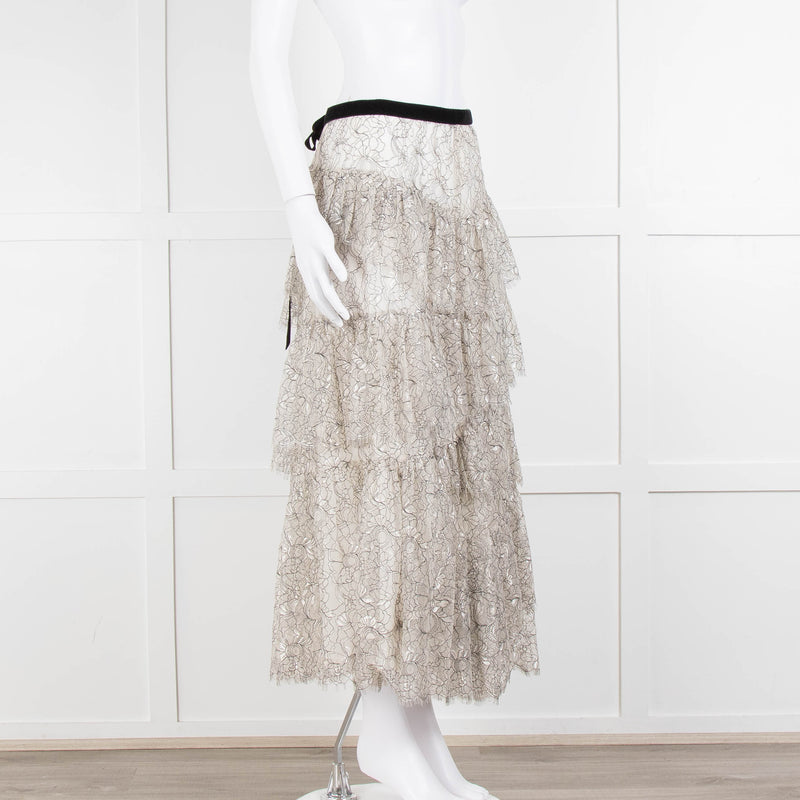 LoveShackFancy White Black Lace Velvet Frill Midi Skirts