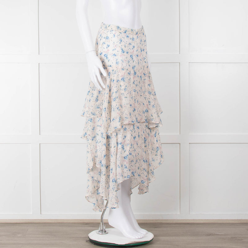 LoveShackFancy Cream Blue Floral Layered Skirt