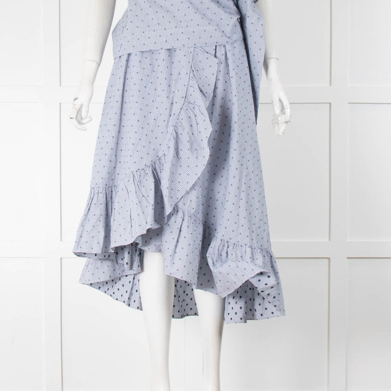 Maje Blue Striped Cotton Wrap Frill Trim Skirt