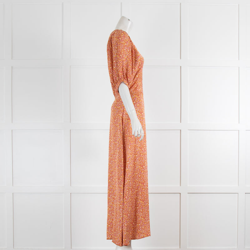 Vanessa Bruno Rust Yellow Floral Short Sleeve Maxi Dress