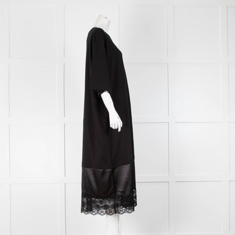 Vaquera Black Dress Satin And Lace Hem