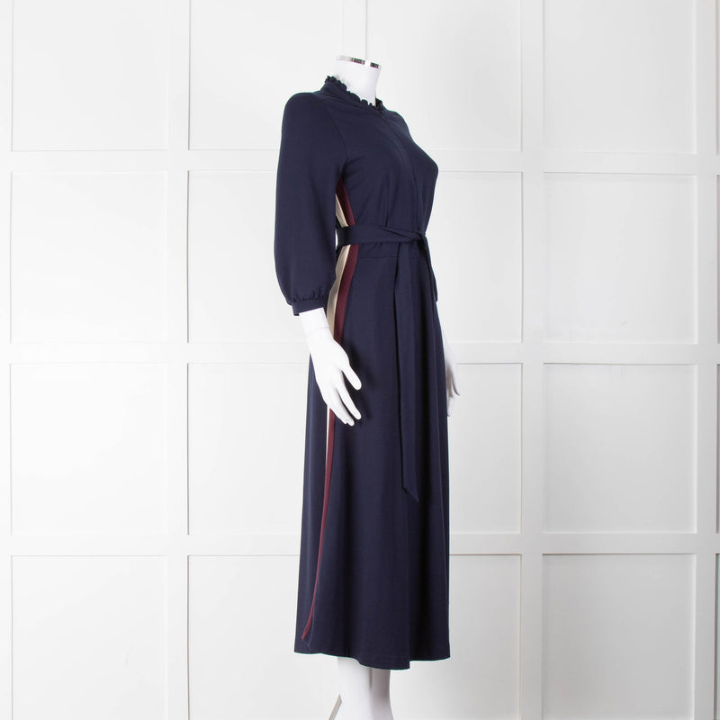WYSE Blue Cream Burgundy Side Stripe Jersey Belted Dress