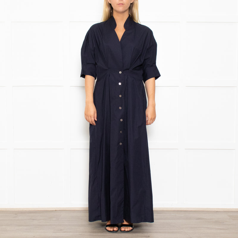 White Story Navy Cotton Gathered Waist Shirt Dress
