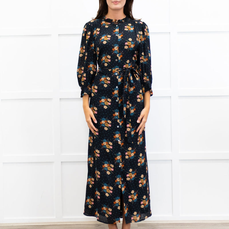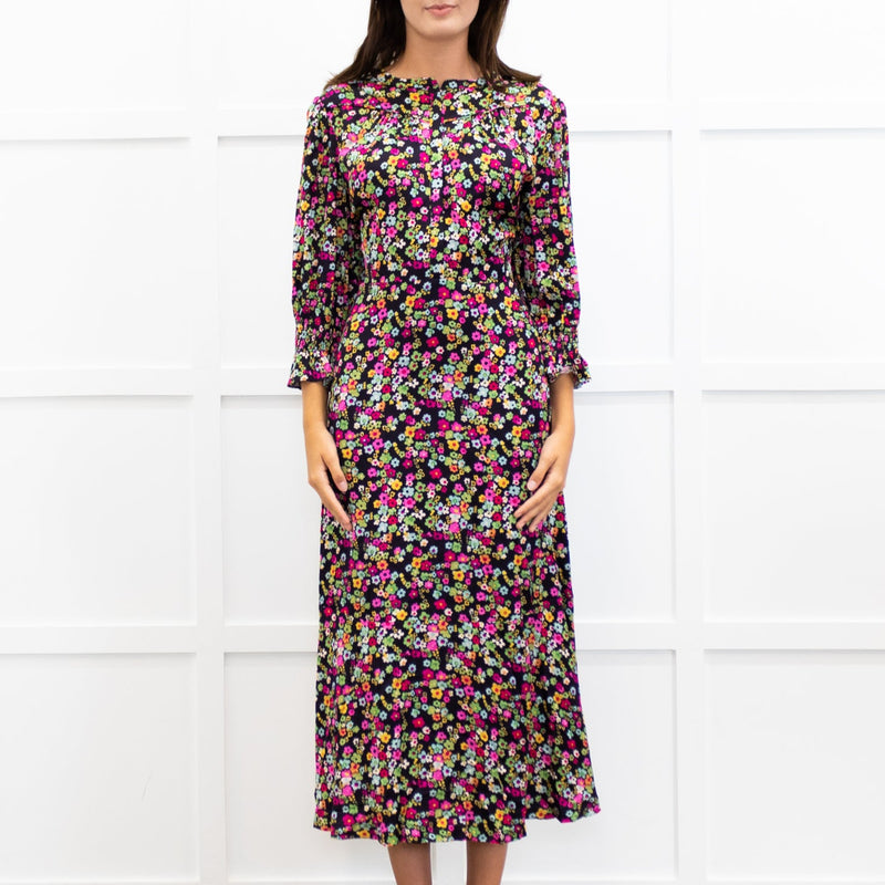 Wyse Black Sabine Floral Spot Print Midi Dress