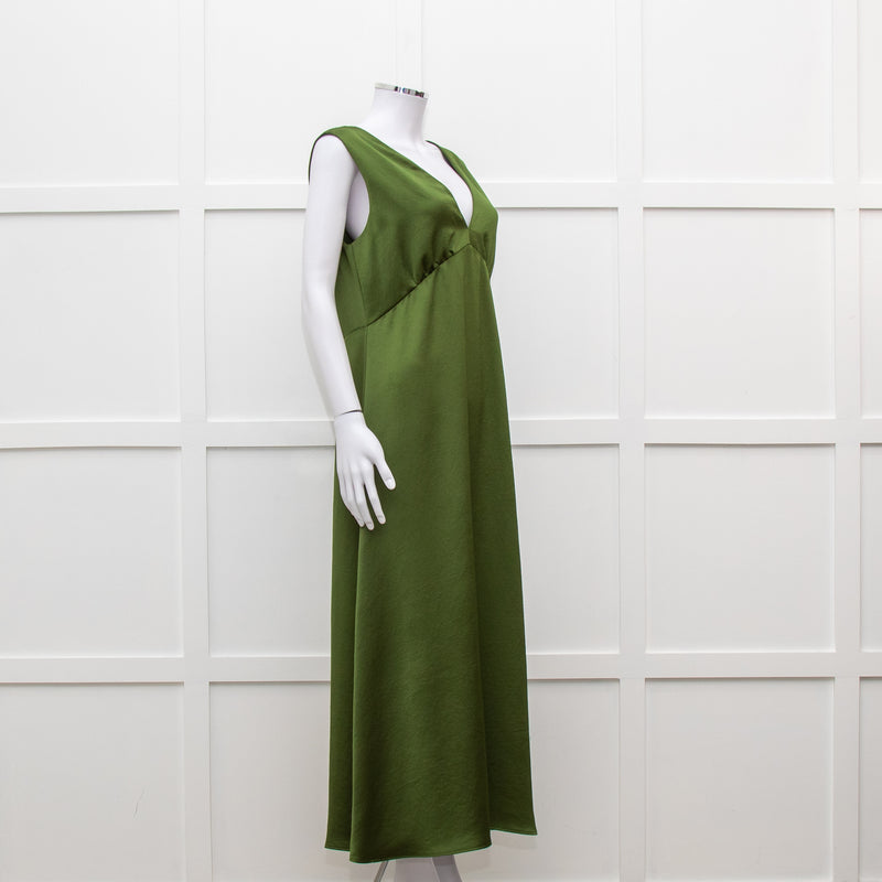 Weekend Max Mara Green Satin Sleeveless Midi Dress