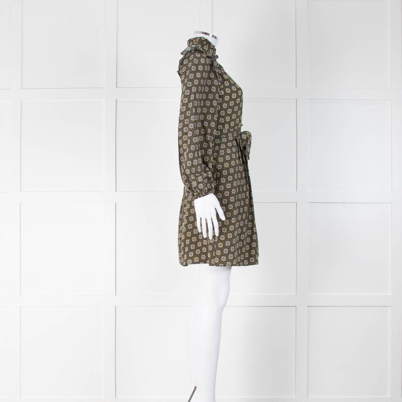 Weekend Max Mara Navy Green Floral Long Sleeve Mini Dress