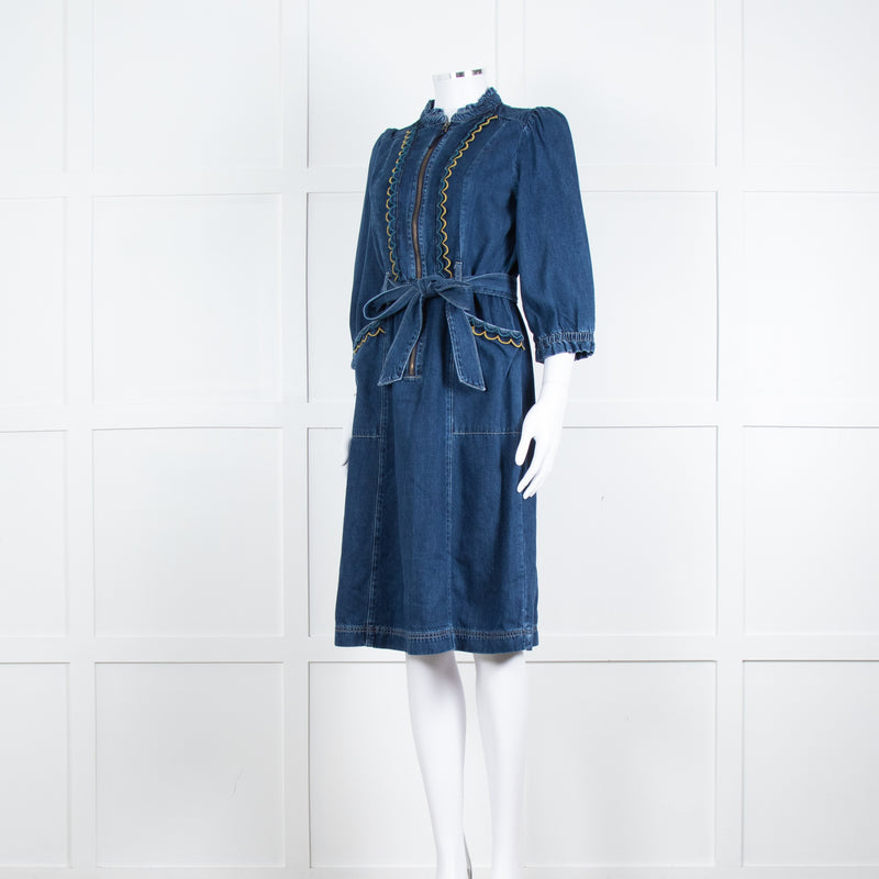 Wyse Dark Blue Denim Scallop Edge Detail Zip Front Dress