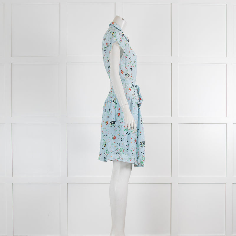 Zadig & Voltaire Pale Blue Red Floral Belted Short Sleeve Dress