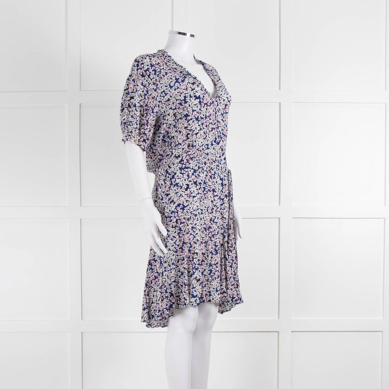 Zadig & Voltaire Blue Pink Ivory Flower Print Short Sleeve Dress