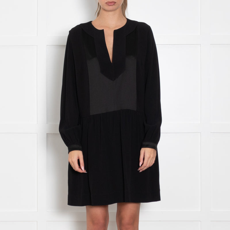 Zadig & Voltaire Black Satin Bib Front Mini Dress