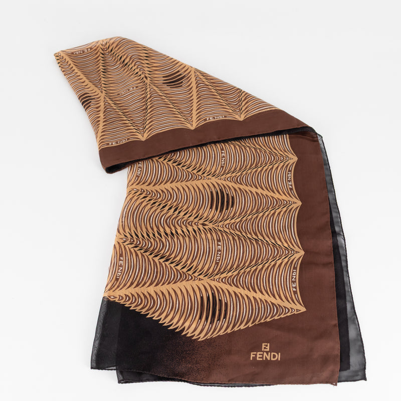 Fendi Brown, Black & White Patterned & Logo Long Scarf