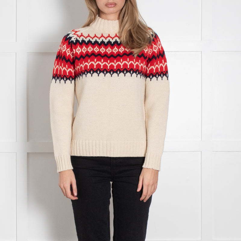 &Daughter Cream, Red & Blue Fairisle Wool Jumper