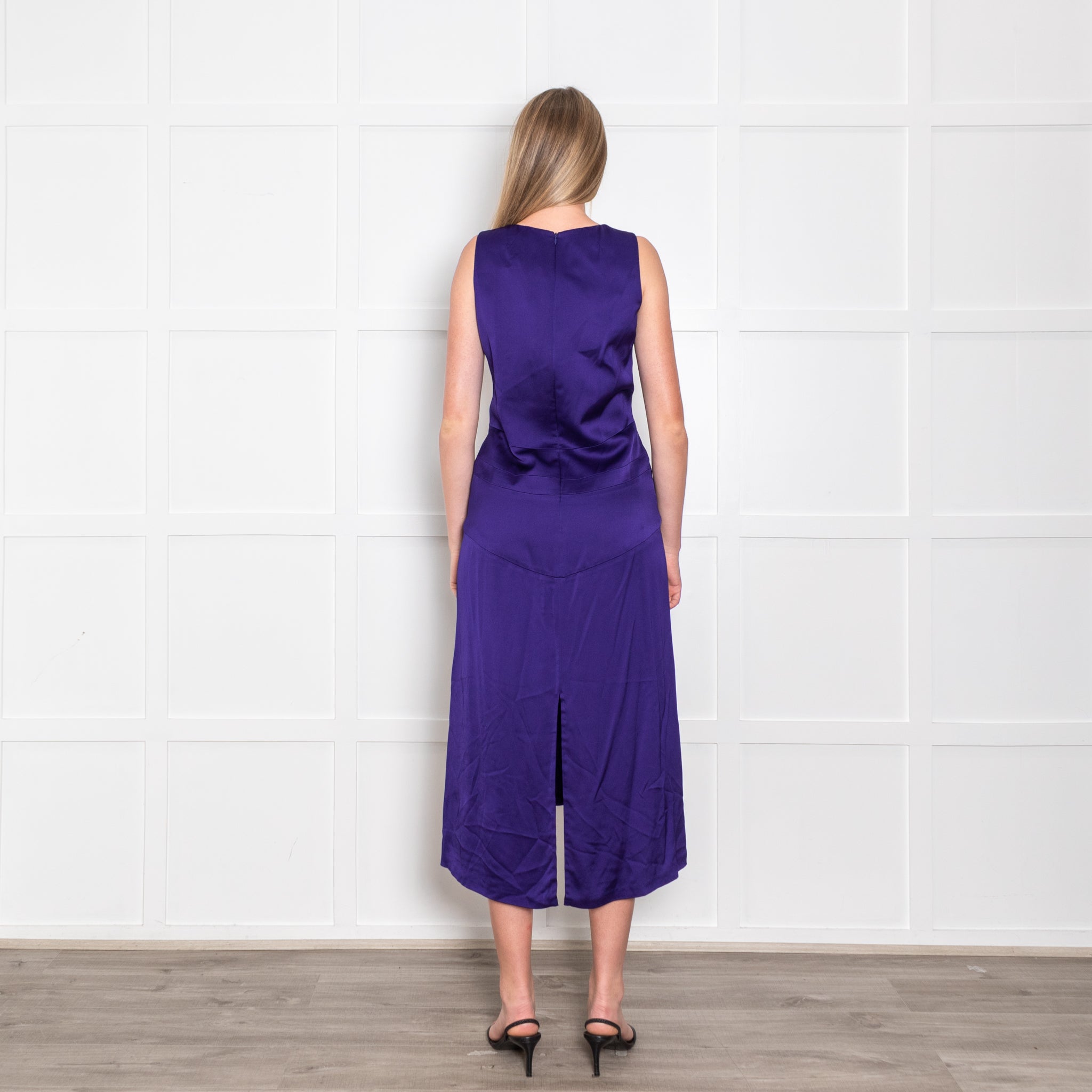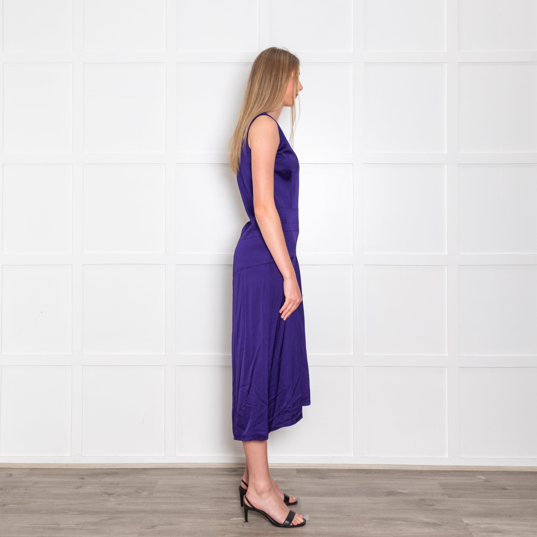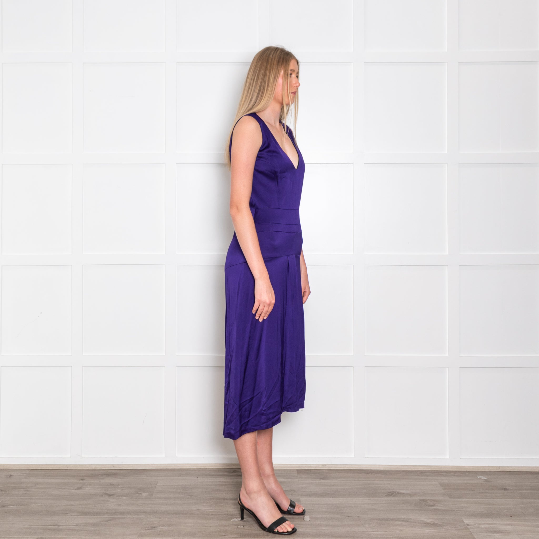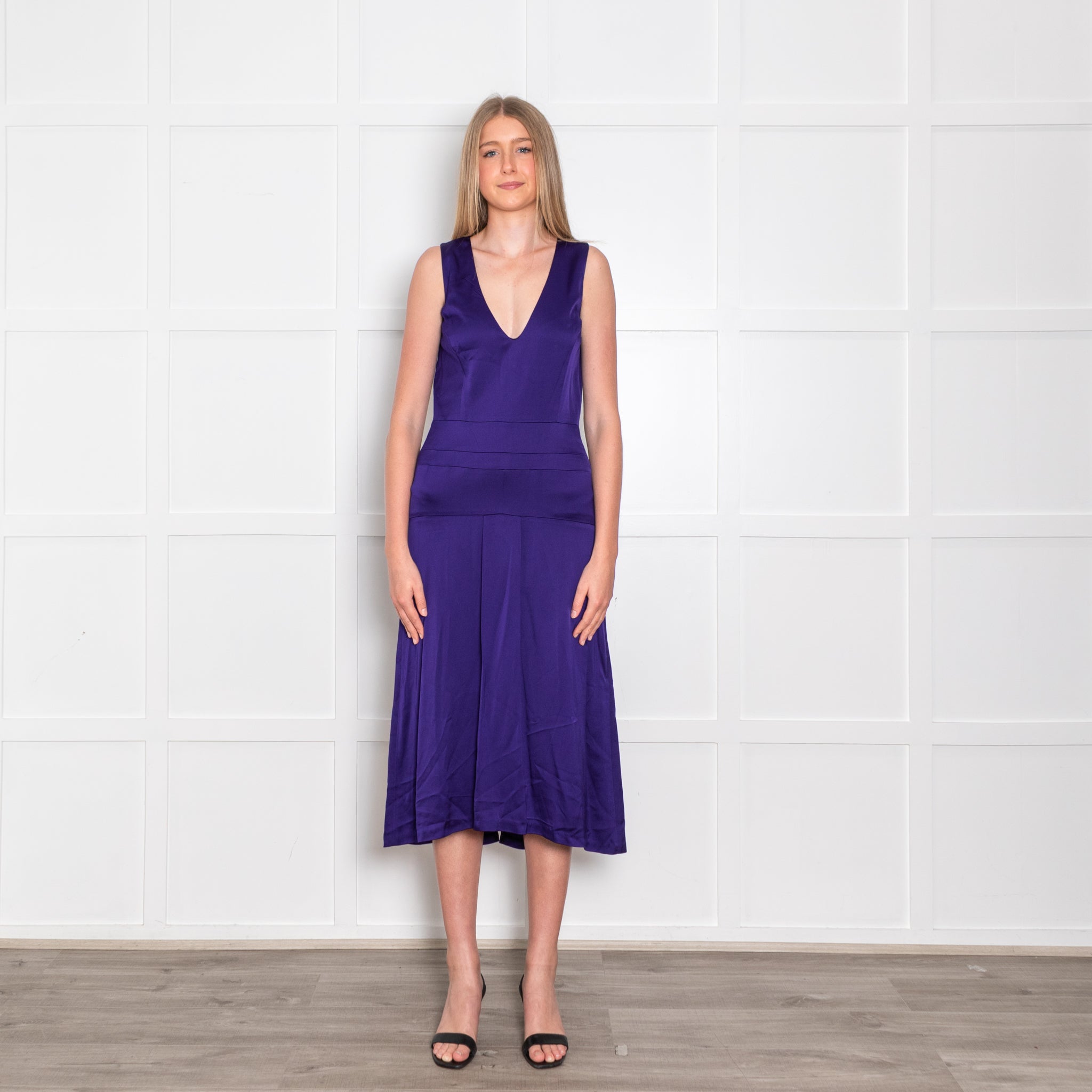 Victoria Beckham Purple Cobalt Satin V Neck Midi Dress