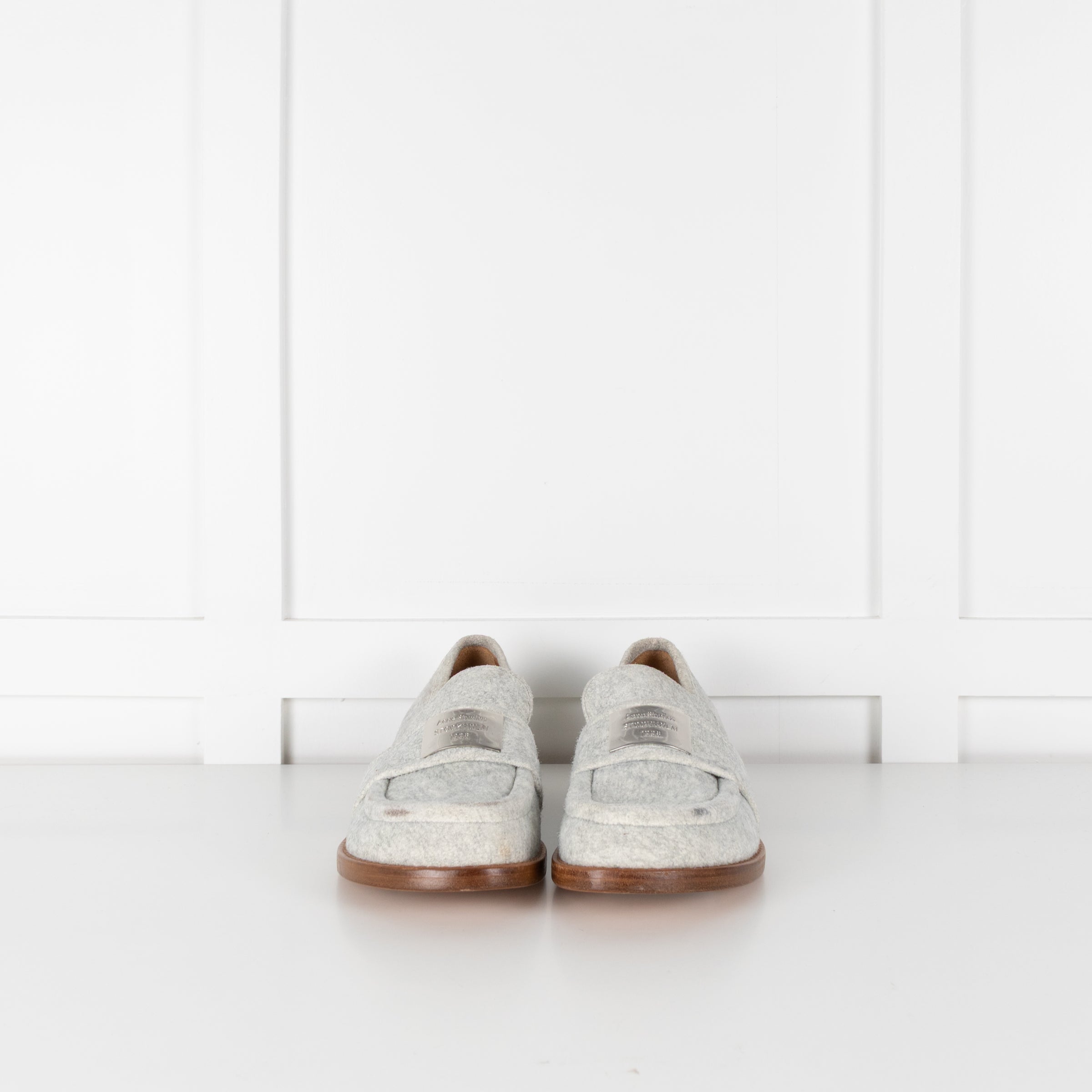 Acne Grey Felted Loafers with Logo Plaque