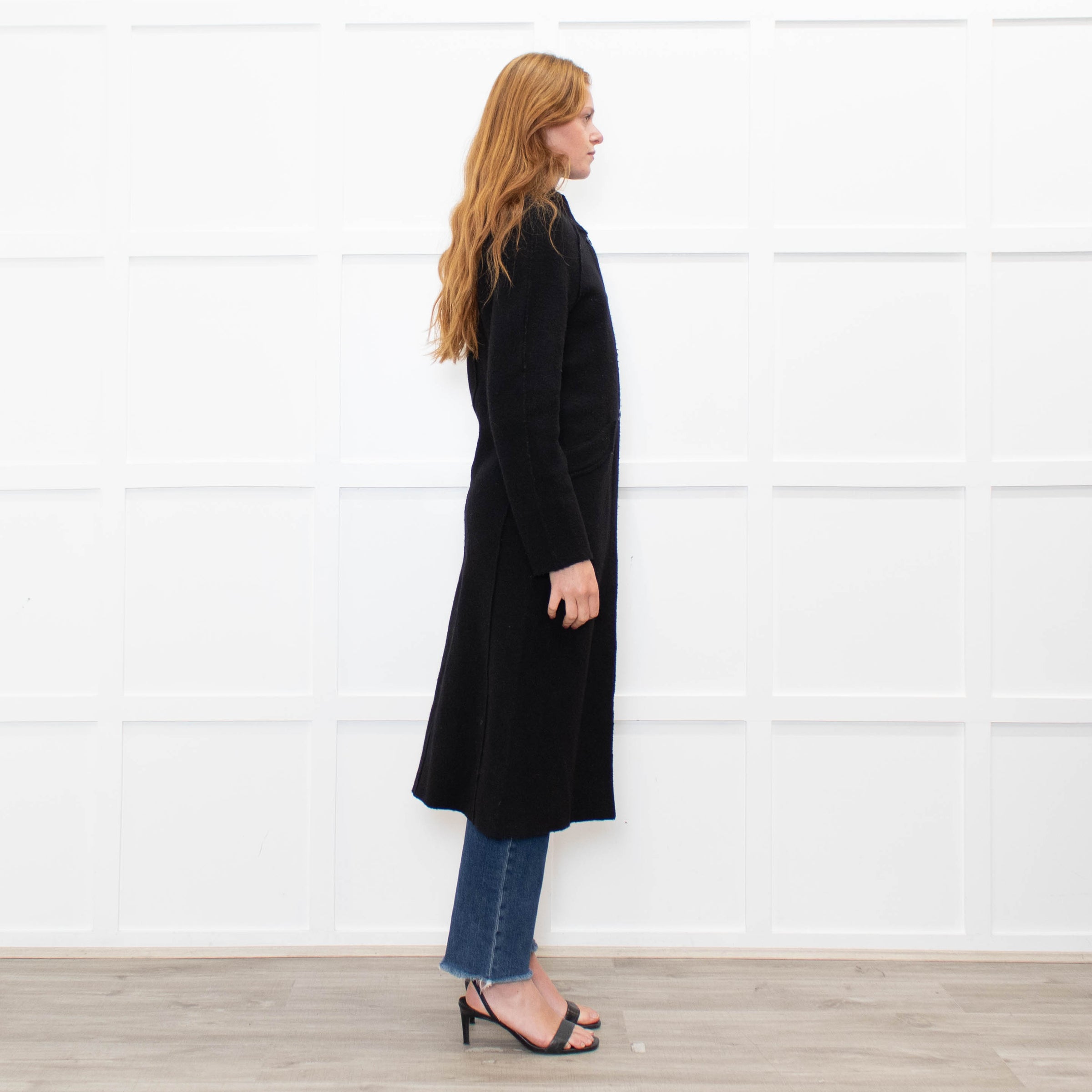Agnes B Black Wool Blend Raw Edge Long Coat