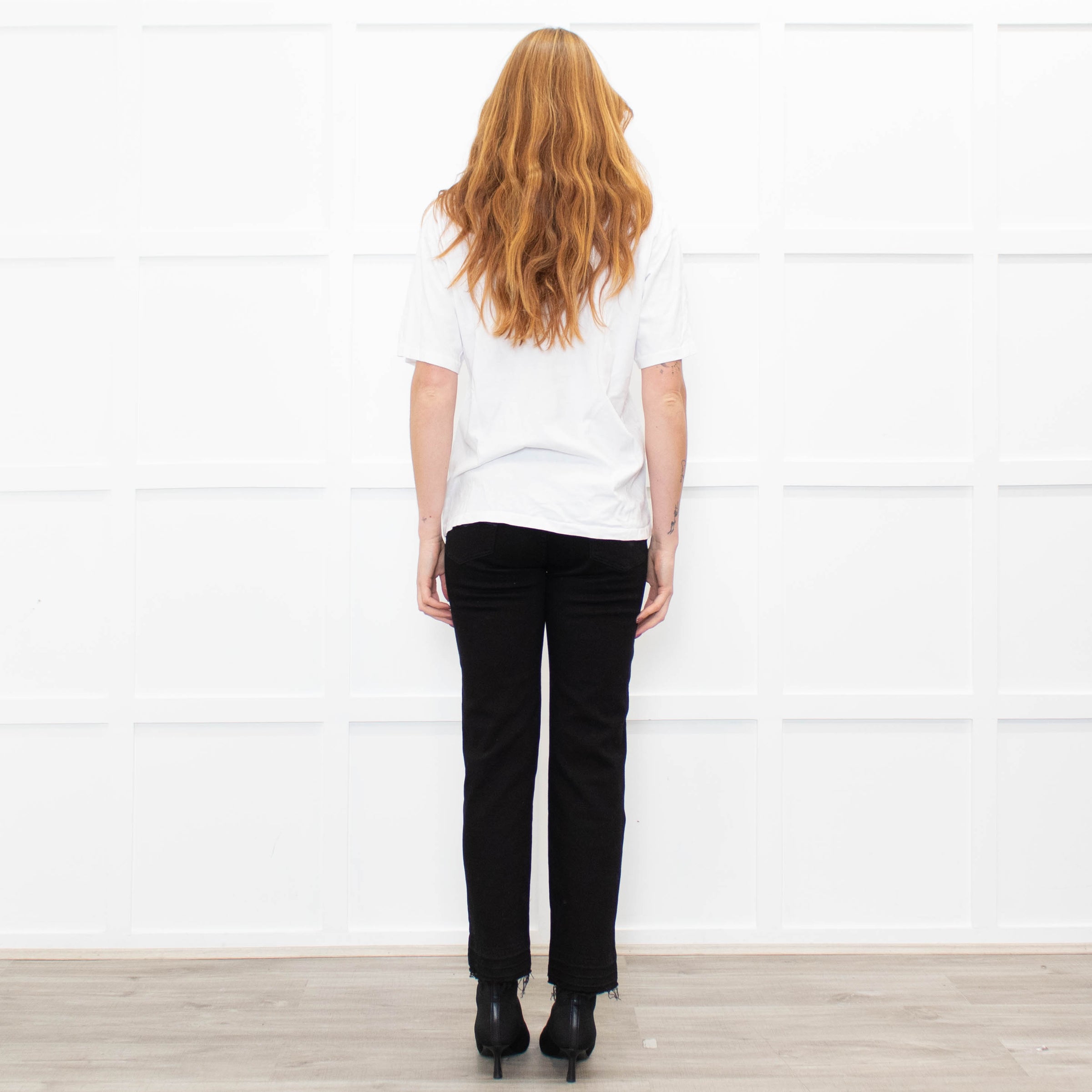 Anine Bing white and grey Brigette Bardot t-shirt with a round neckline and ribbed trims.