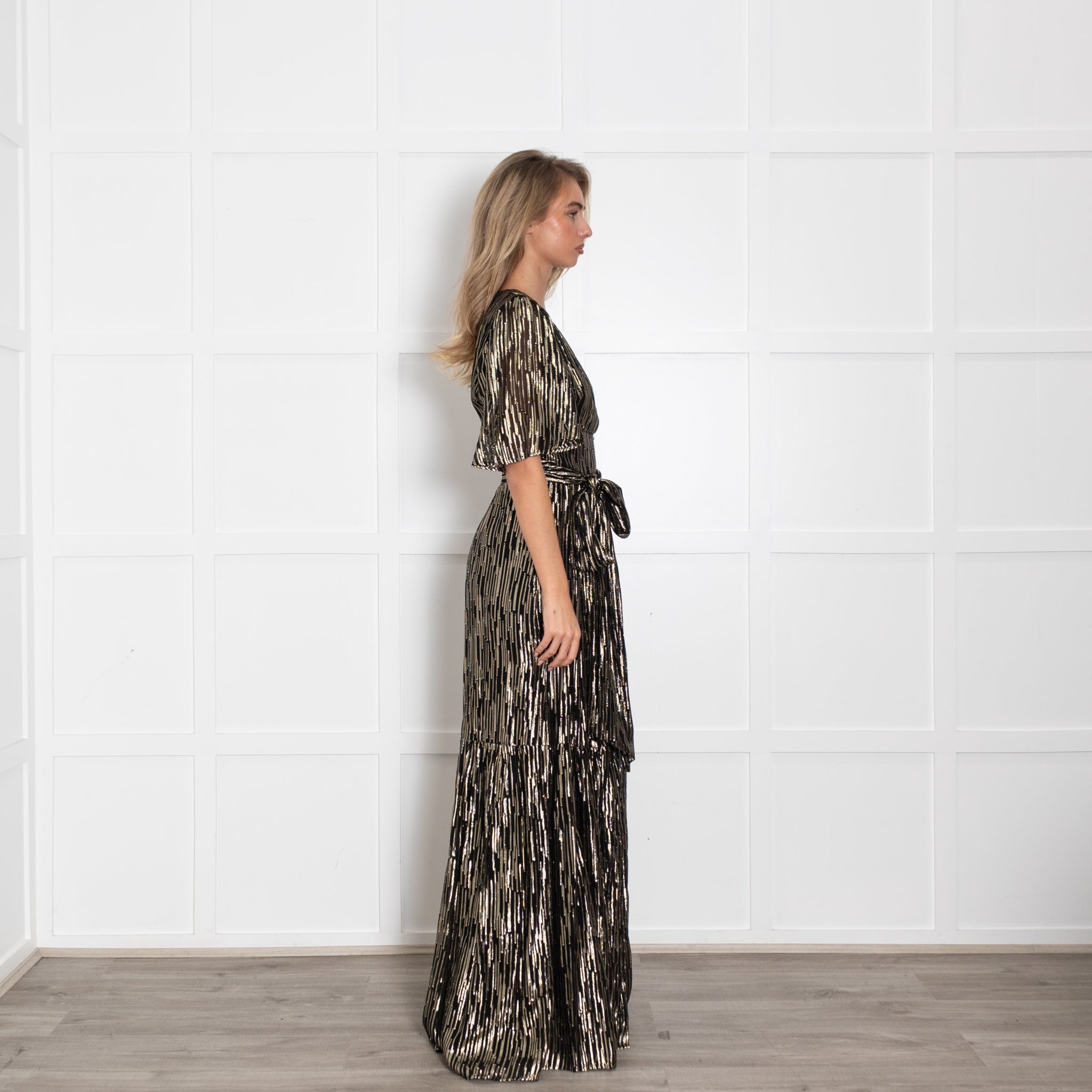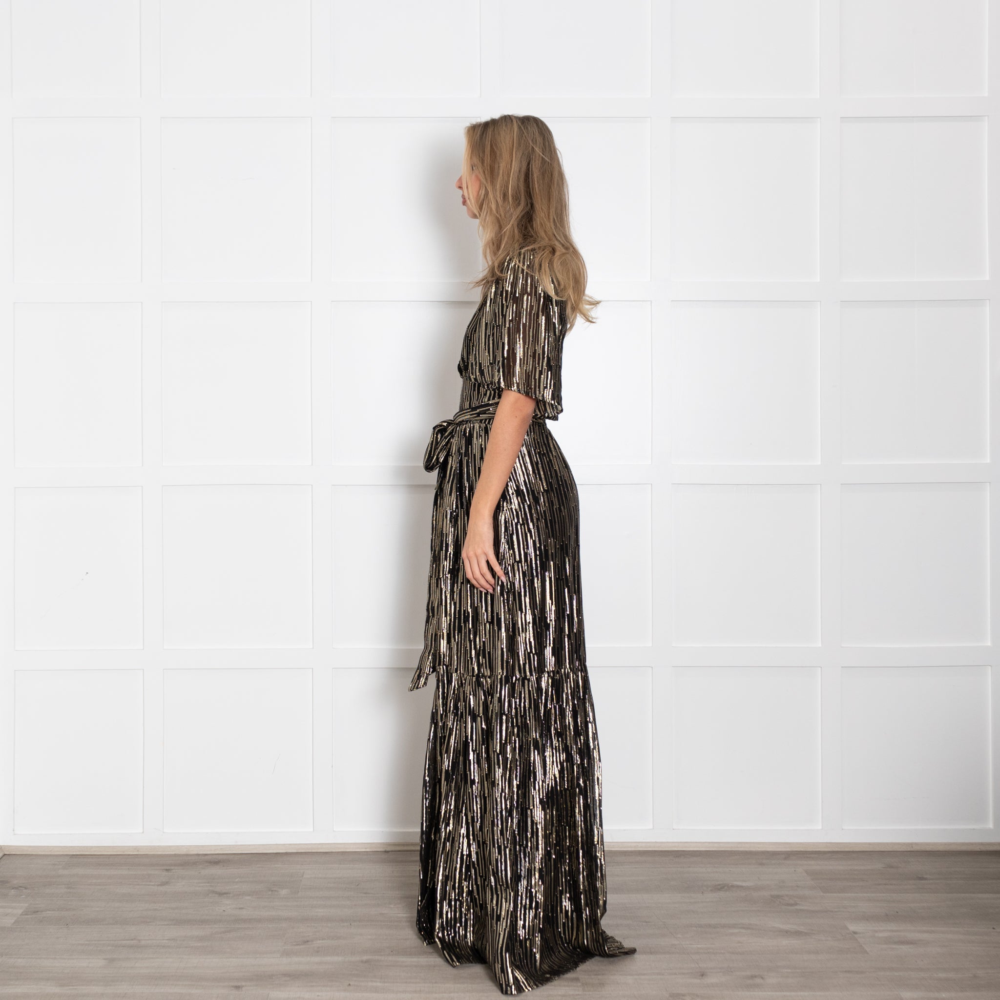 Ba&sh Black & Gold Sequin Belted Maxi Dress