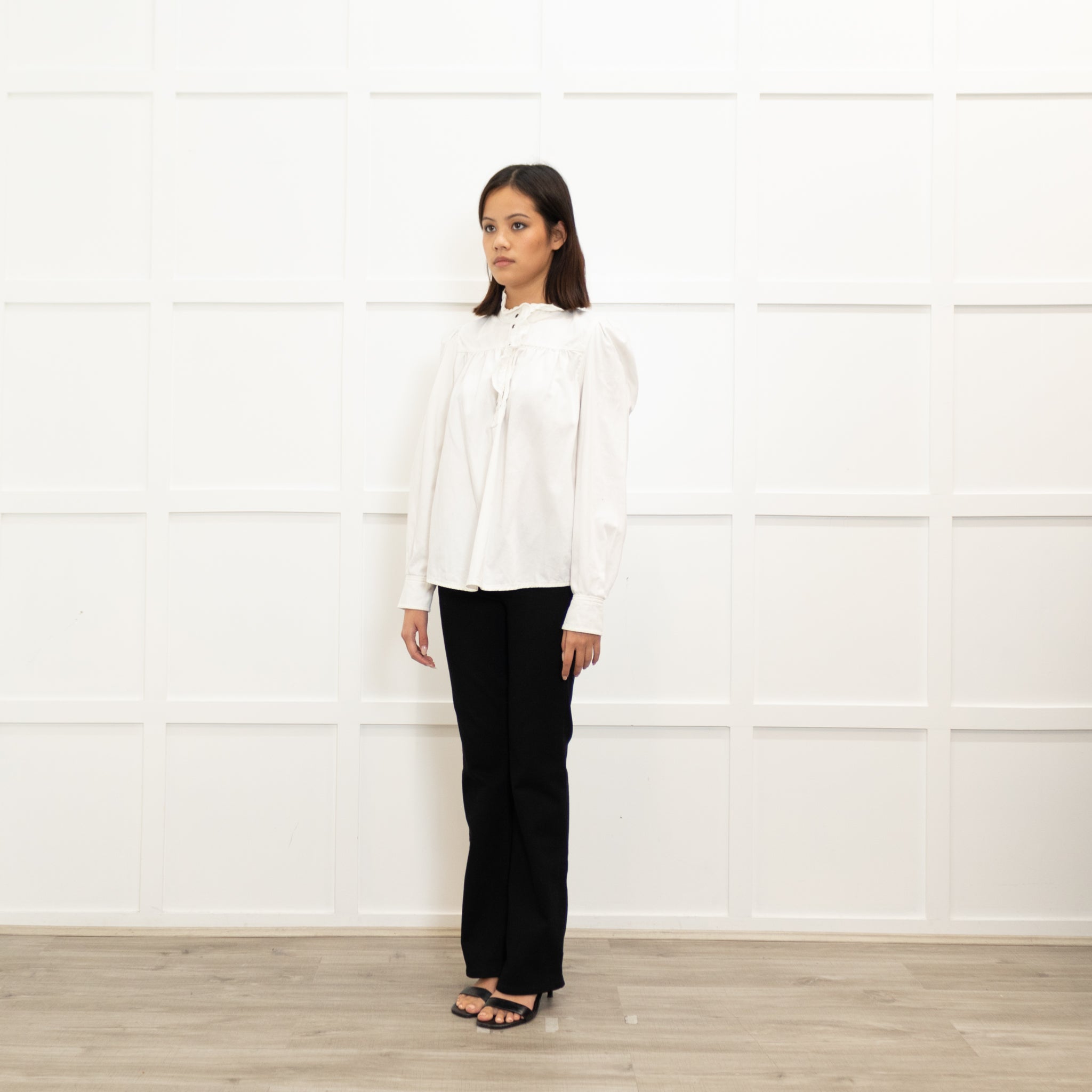 Ba&SH Cream Cotton Frill Trim Long Sleeve Top