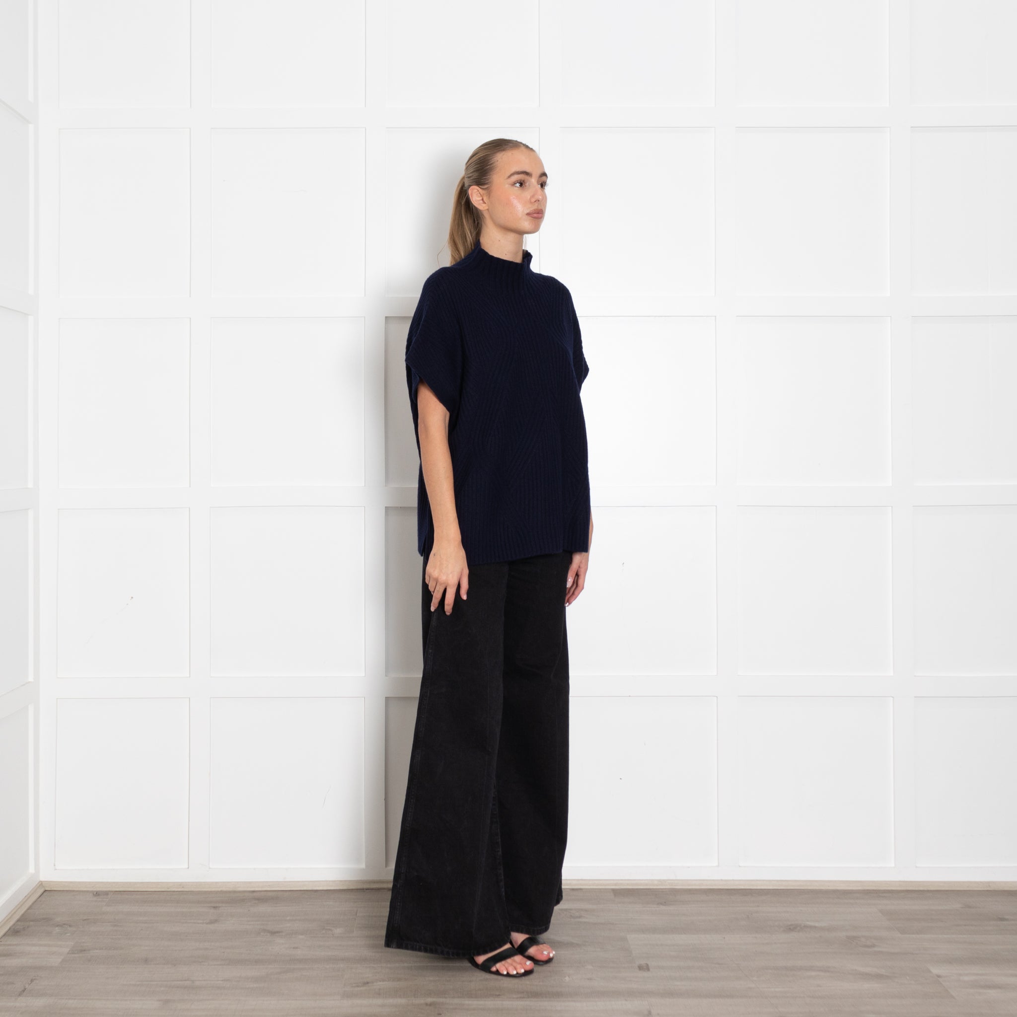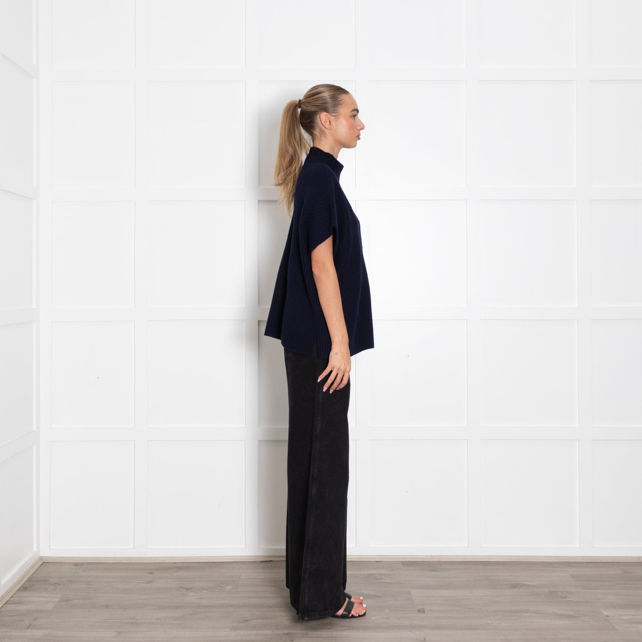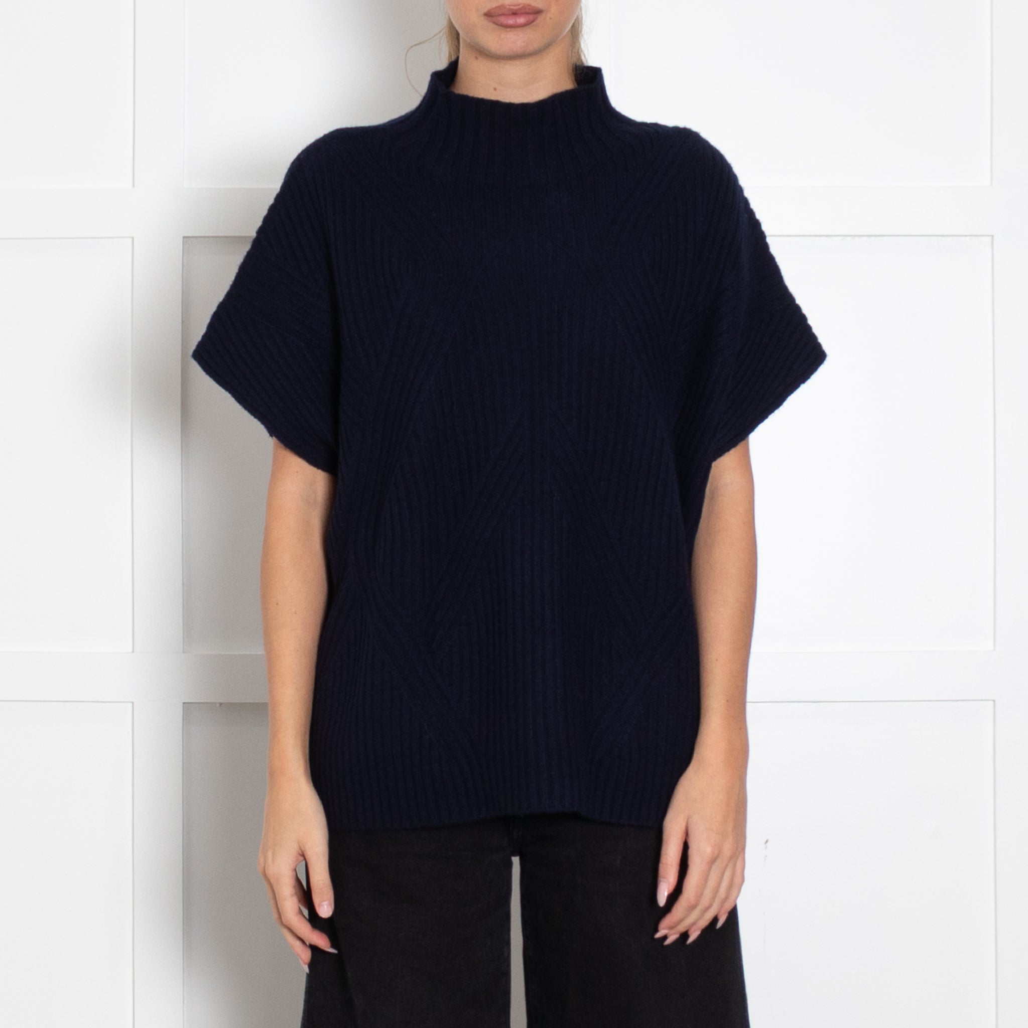 Bompard navy blue sleeveless sweater, featuring a high rolled neck, crafted with a soft cashmere fabric.